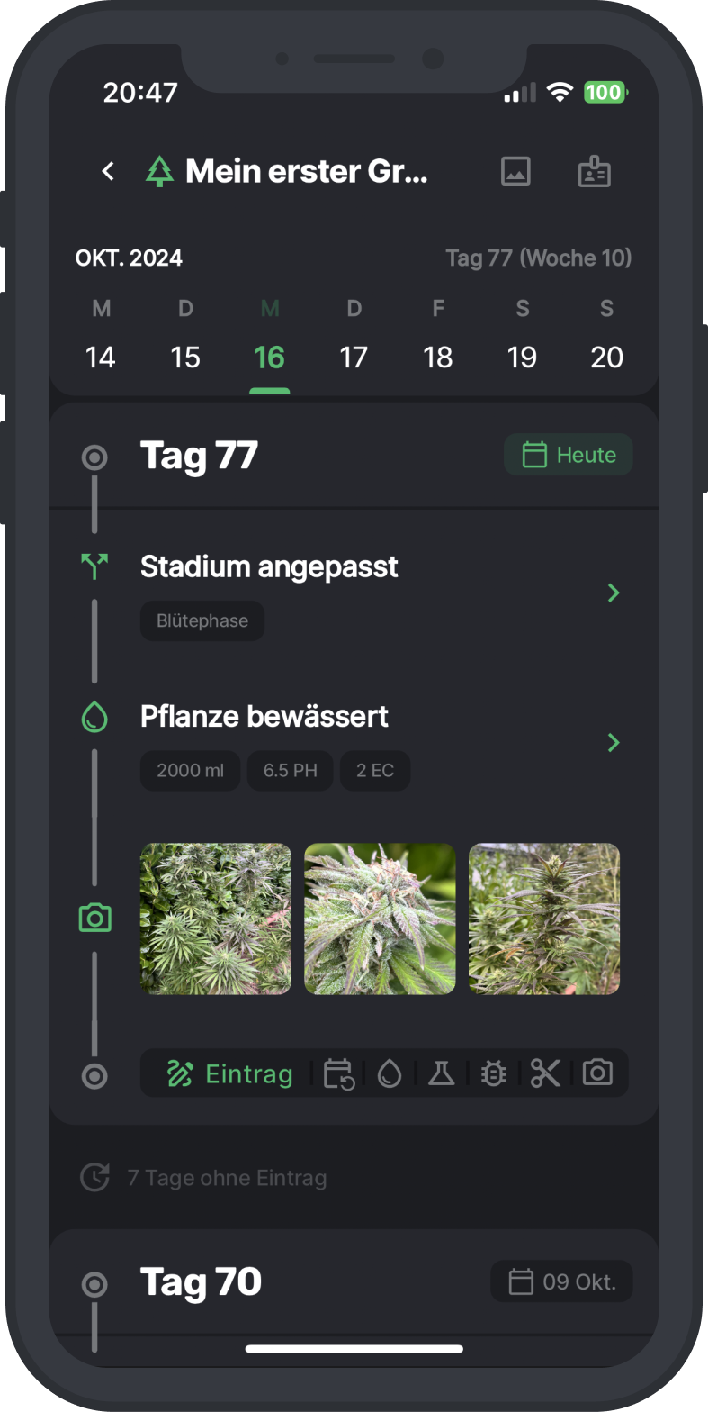 Plane und protokolliere alles rund um deine Cannabis-Pflanzen.