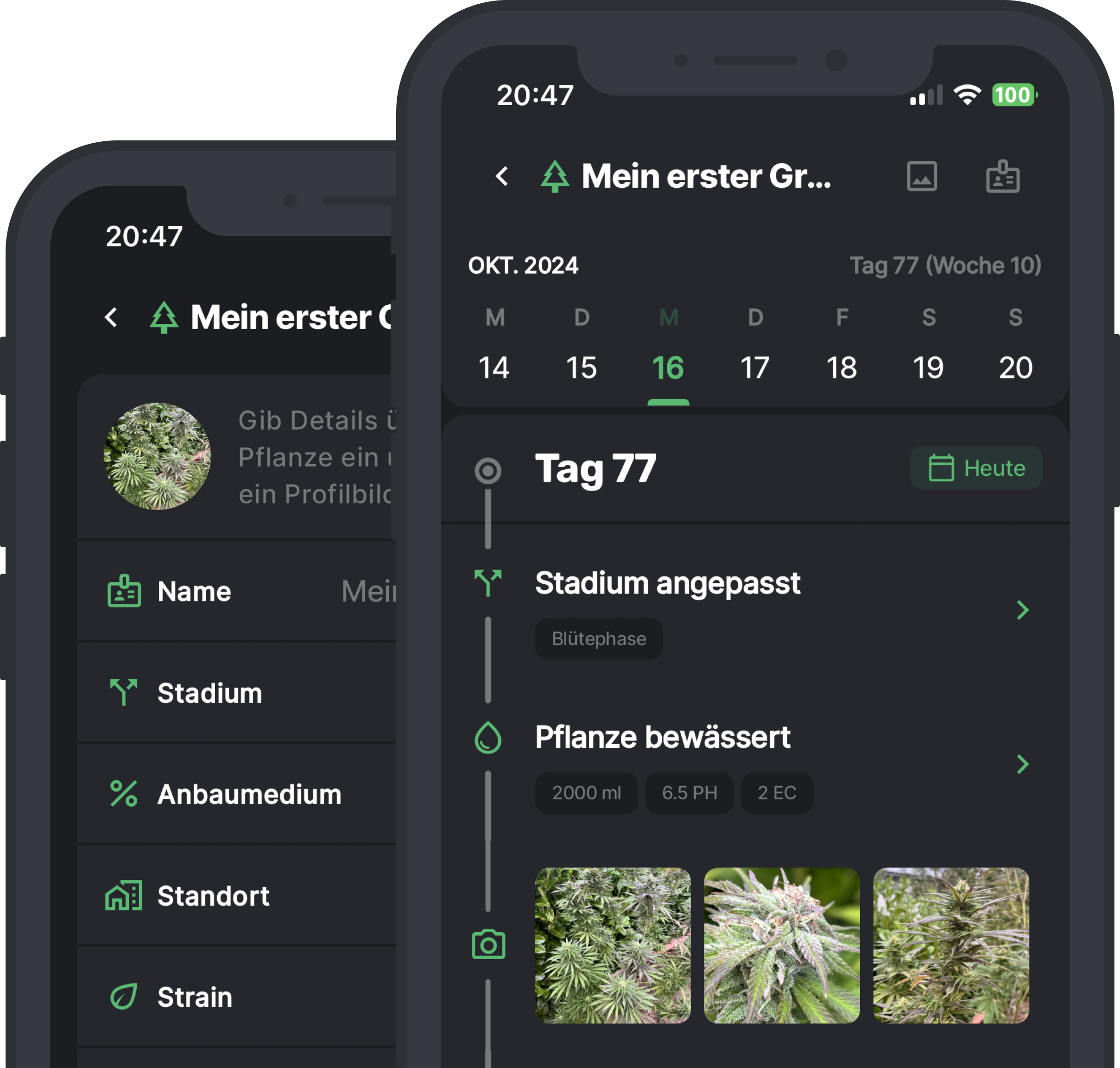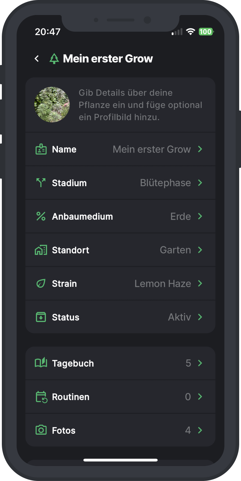 Plane und protokolliere alles rund um deine Cannabis-Pflanzen.
